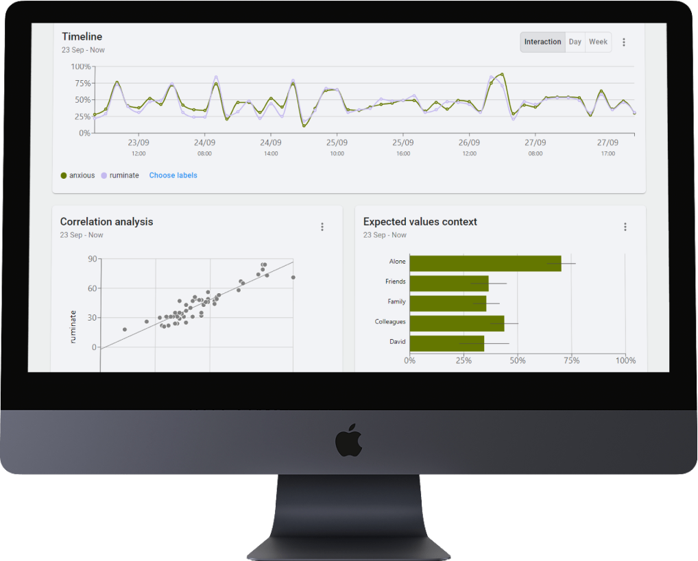 Finally, the practitioner inspects and interprets the client’s data via multiple intuitive analysis tools. Interesting patterns and critical insights can be shared with the client during the actual therapy session.