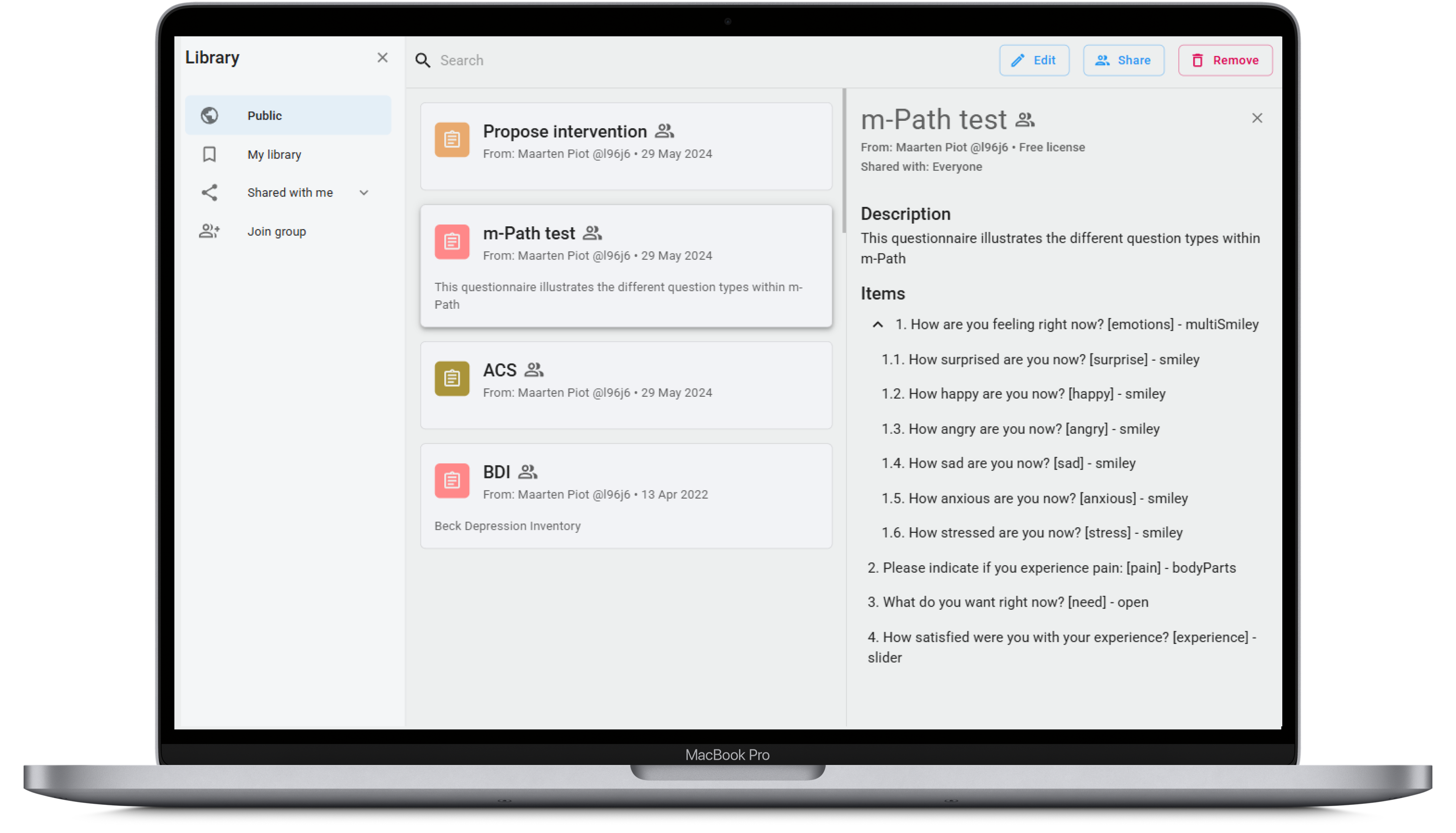 Share your content with other m-Path users in our public library, or draw from their creations.