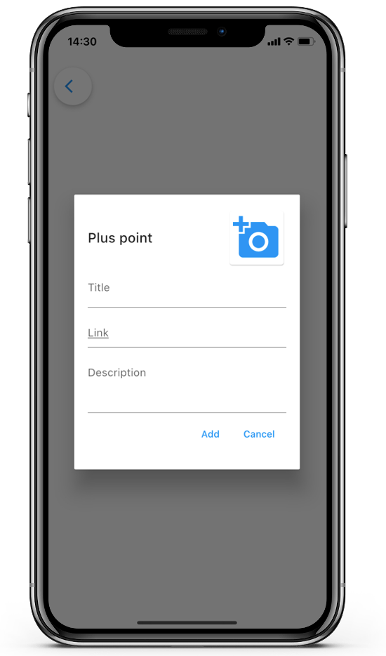 An Add positive memory item can be used to make a client add a plus point. The Add positive memory item will not be displayed as a question, but it will automatically make this screen pop up on the client’s phone: