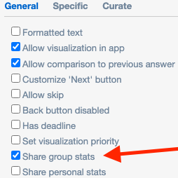 In your m-Path dashboard it is possible to divide clients in groups. This can be useful for several reasons, one of which being that data can be shared within groups. While the Group Summary item allows you to show a graphical overview of the team’s responses, the Group Stats questionnaire item allows you to assign variables with these group statistics so they can be used for piping or computations.