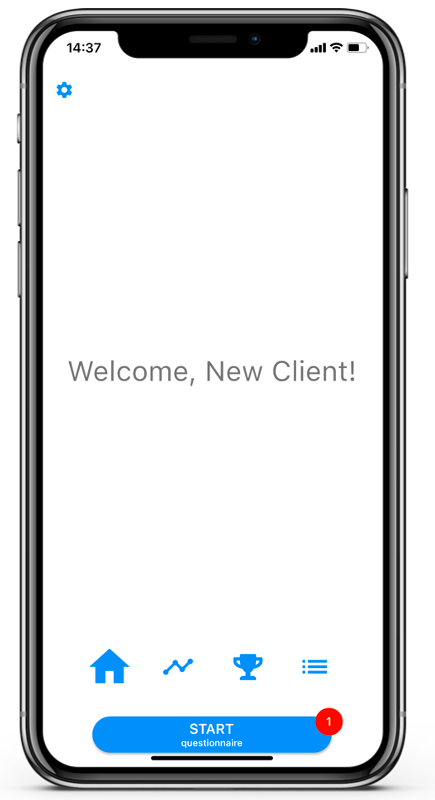 On the home page of the app, clients have the option to start a new questionnaire using the ‘START’ button.