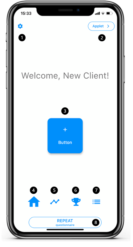 A home button (a button on the client’s home page) allows a client to directly start a specific questionnaire at any time.