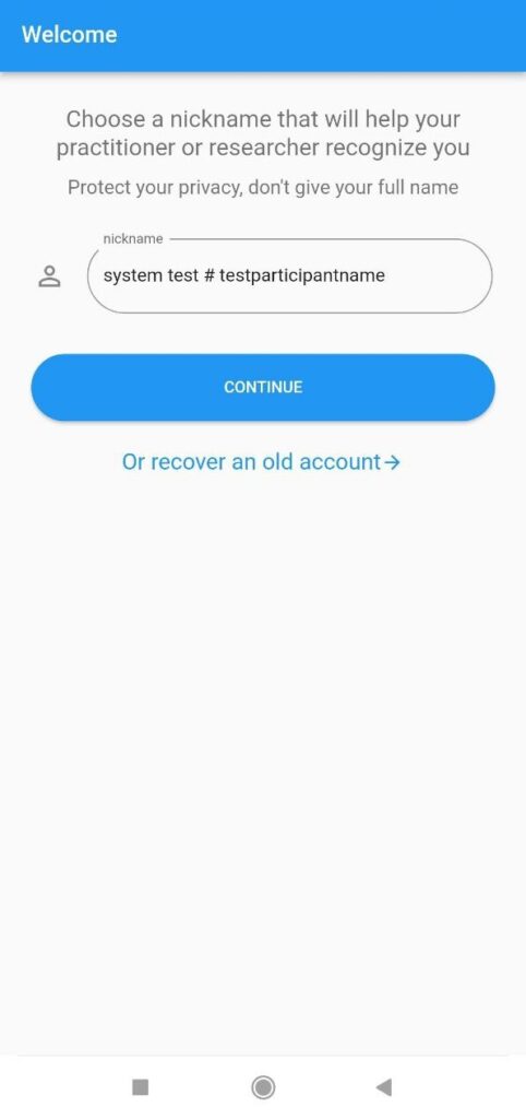 When you open the m-Path app for the first time, choose a new alias or nickname. Avoid the loss of participant slots of your premium subscription by choosing a nickname following these guidelines. Subsequently you can save your new recovery code and accept the terms of conditions.