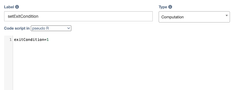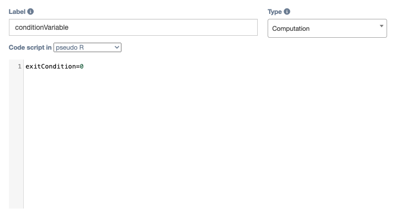 Before entering your loop, you’ll want to define an exit condition. You can do this by putting a computation module before your loop, wherein you initialise a variable (preferably to 0), which will tell the loop when to exit.