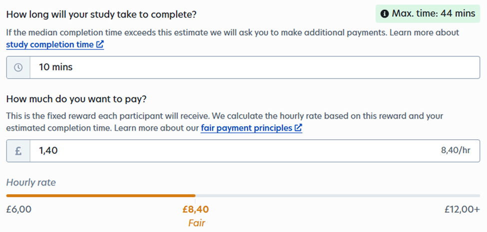 This means that when you filled in the intake and if you fill out ALL the surveys you would in total receive £XX (which is equivalent to £XX/hour).