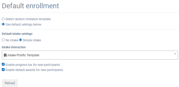 Now we bring everything together by setting the auto-enroll. On your dashboard, go to “Settings”, “Auto enroll”. “Default enrollment” section will open. Choose for “Simple Intake” and choose the intake you’ve made. This way participants will immediately come to your intake when they download the app and add you as a researcher.