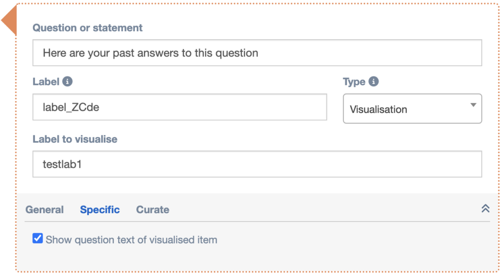 Check this setting if you want to show the actual question text above the visualisation (in addition to the statement entered for the visualisation).
