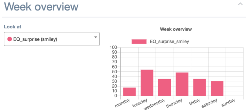 Under Week overview, you can see the average of one (quantitative) item per day of the week. Note that you can only select an item from the selected (quantitative) items.