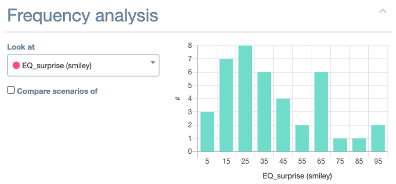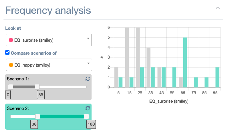 Under Frequency analysis, you can visualize the frequency of answer options for one item from the selected (quantitative) items.