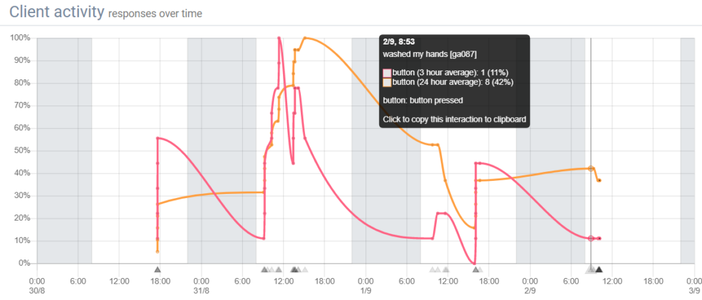 Example 1: “61% response rate last week“. Let’s assume today is a Wednesday, than it means that the participant completed 61% of the notifications they got from today until past Thursday.