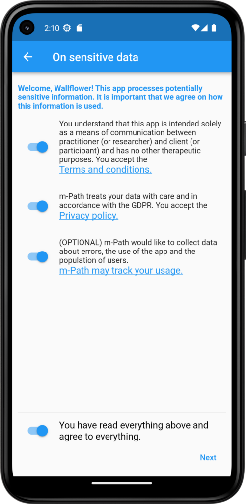 - Data access permission is granted to the m-Path app on the participant’s phone