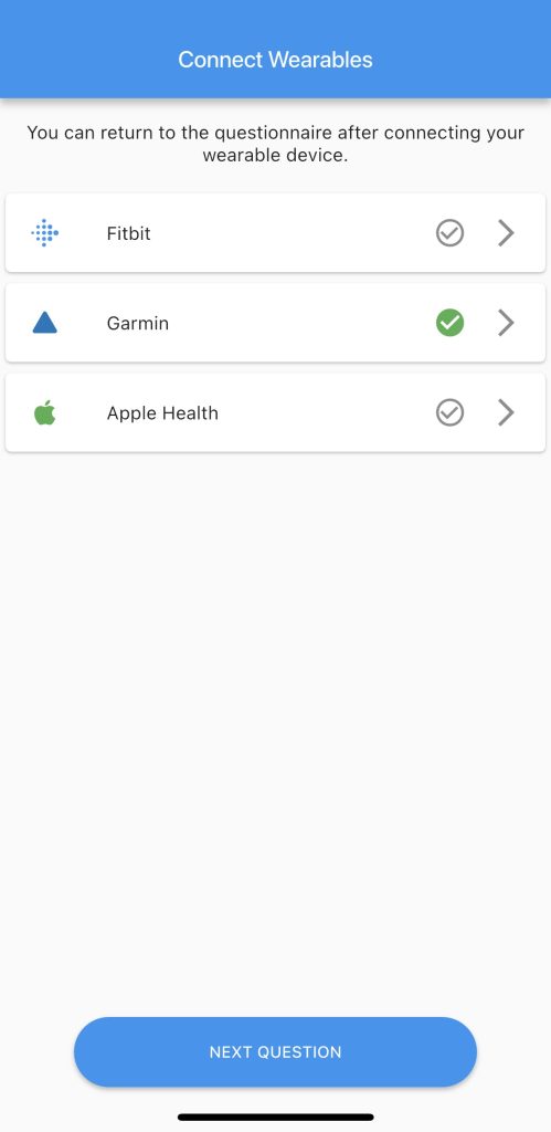 To begin collecting wearable data from your participants, you’ll need to add a “Connect Wearable” item to a questionnaire. This special question type prompts participants to connect their wearable device and has one crucial property: