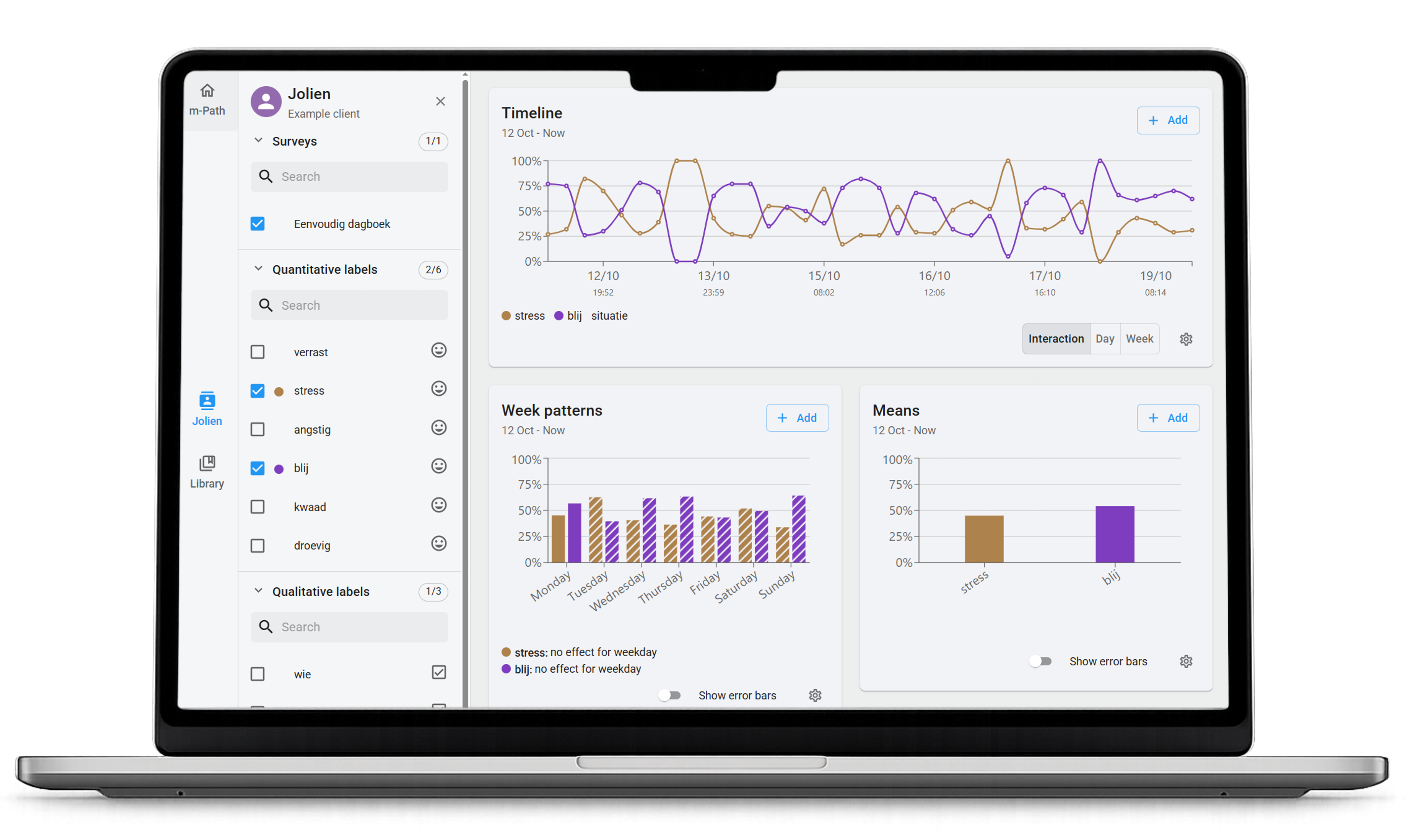 Enable simple graphs integrated into the m-Path app. This supports insight into individual patterns and strengthens intrinsic motivation over time.