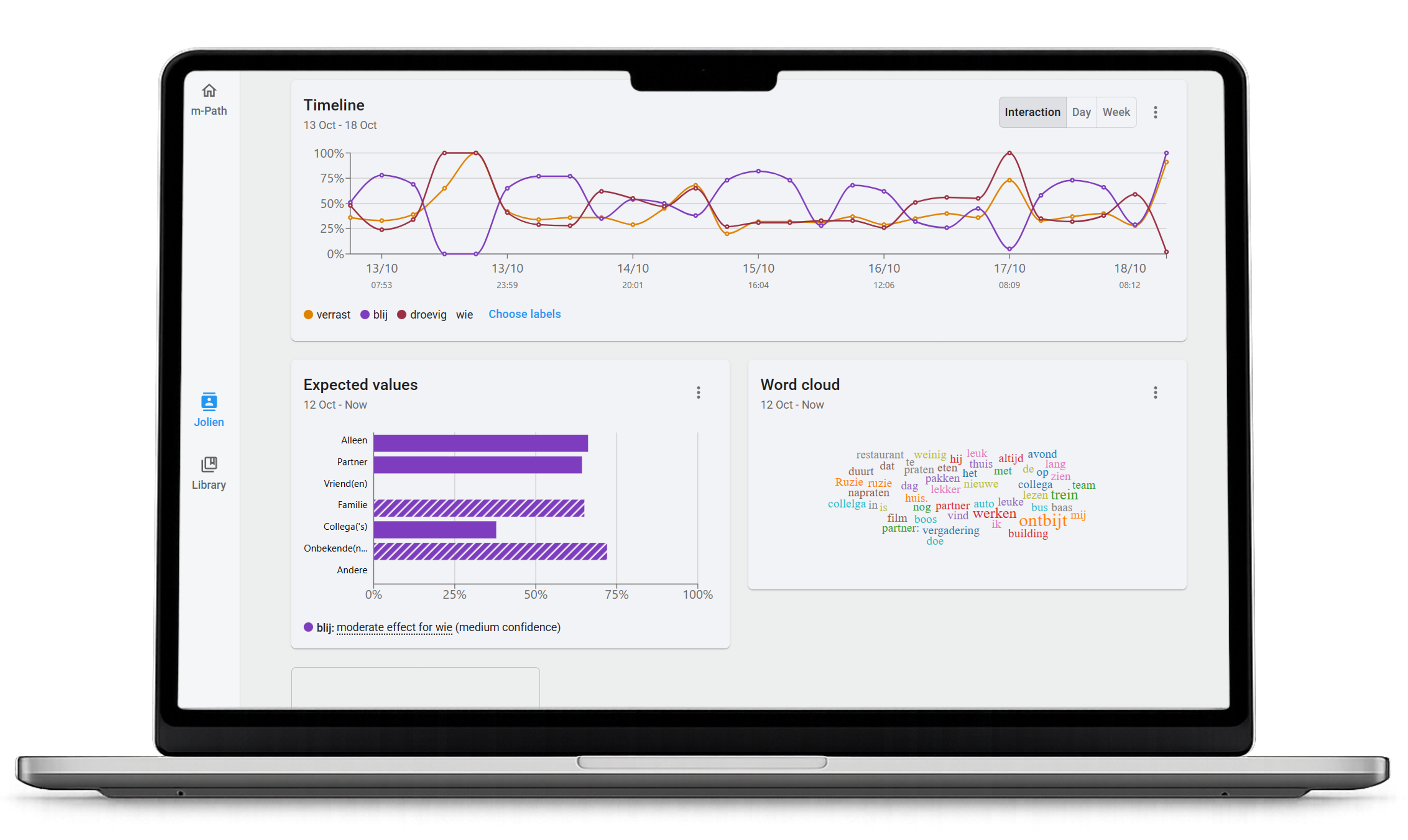On request, m-Path collaborates with researchers to design custom study pages where participants can view individual responses or aggregated group-level results as part of citizen science projects.